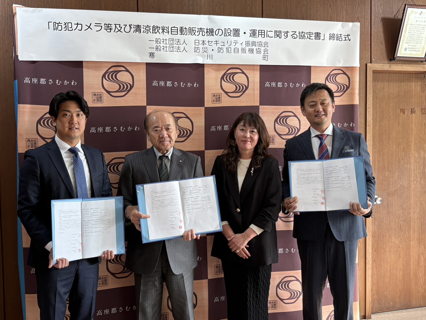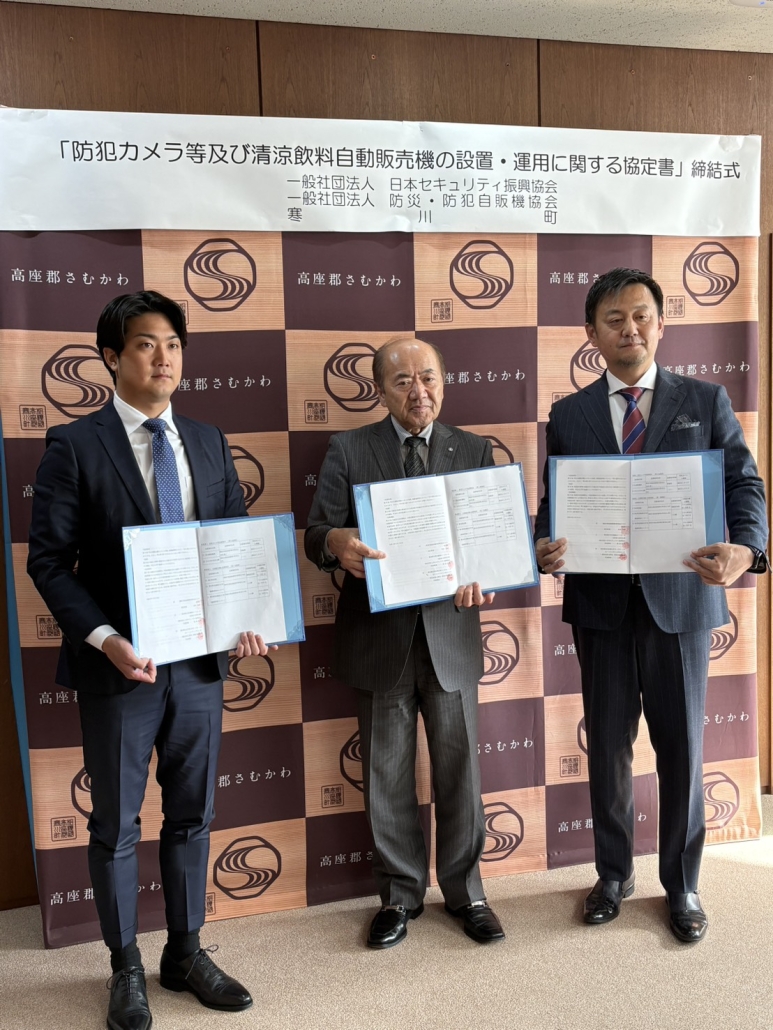 一般社団法人日本セキュリティ振興協会(代表理事:松田浩幸)は、令和8年3月30日(月)、神奈川県寒川町と「災害時の緊急飲料提供のための自動販売機設置および防犯カメラの無償設置に関する協定」を締結しました。本協定により、災害対応型自動販売機3台の設置と、防犯カメラ2台の無償寄贈が行われます。自治体の財政負担を一切伴わず、地域の安全対策と防災機能を同時に強化する官民連携モデルが、神奈川県内へと広がります。